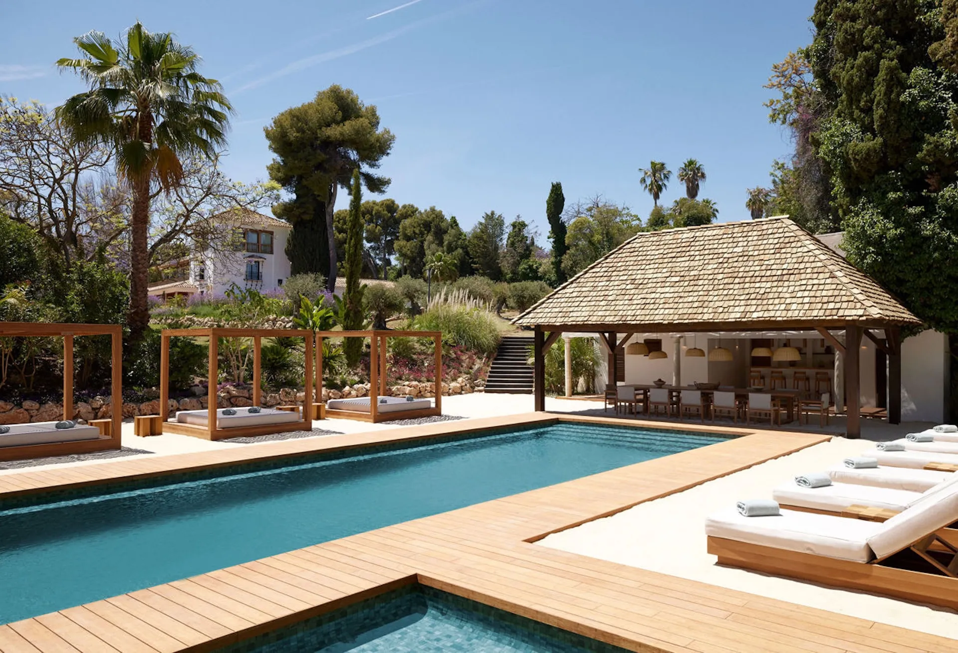 Las villas de Marbella son tan diversas como las parejas que celebran en ellas. Desde mansiones contemporáneas de diseño minimalista y geometrías puras hasta cortijos andaluces históricos cubiertos de buganvillas y encanto terracota — cada propiedad cuenta su propia historia. La arquitectura se convierte en una extensión del diseño de la boda: